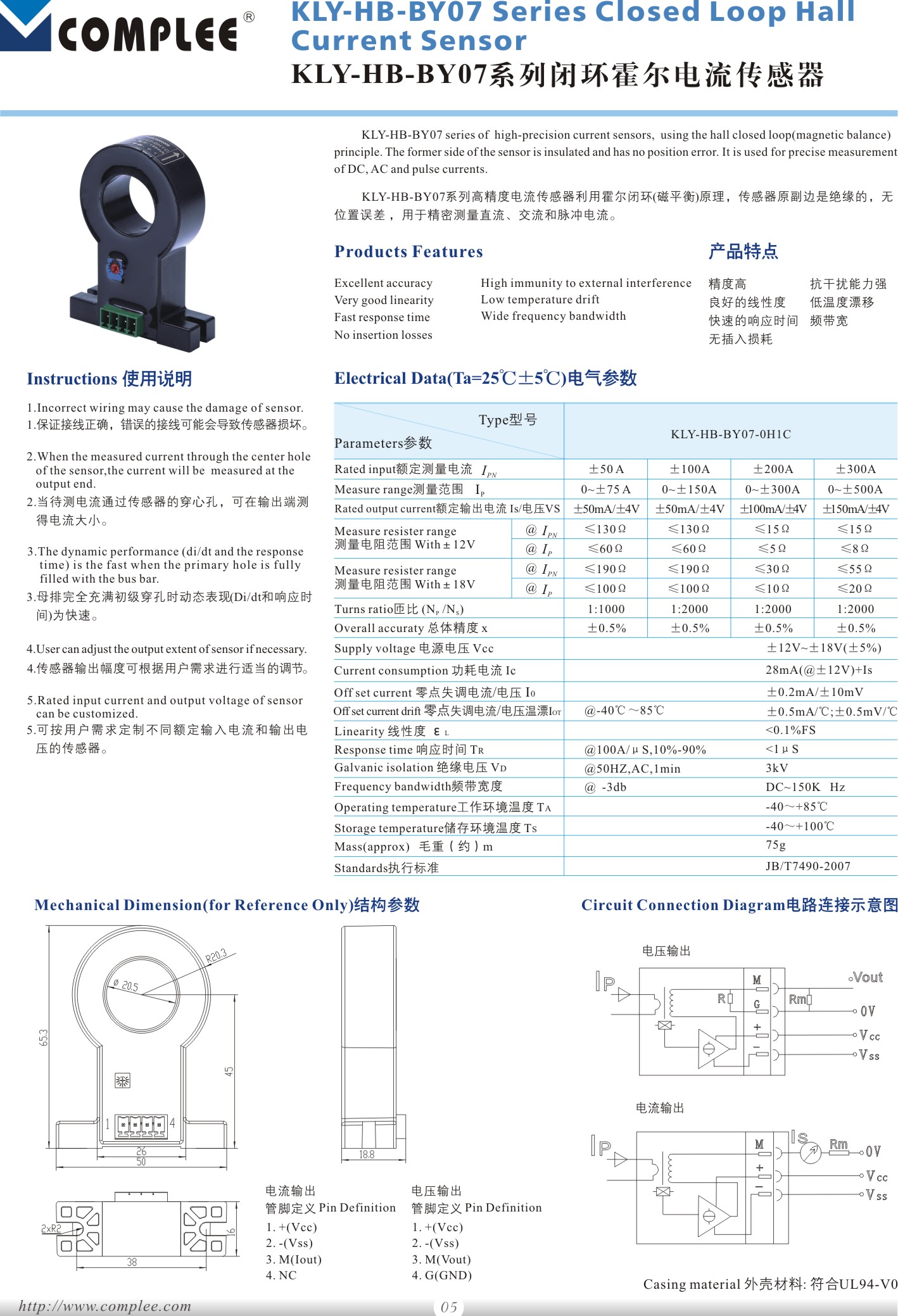 KLY-HB-BY07 series closed loop Holzer current sensor
